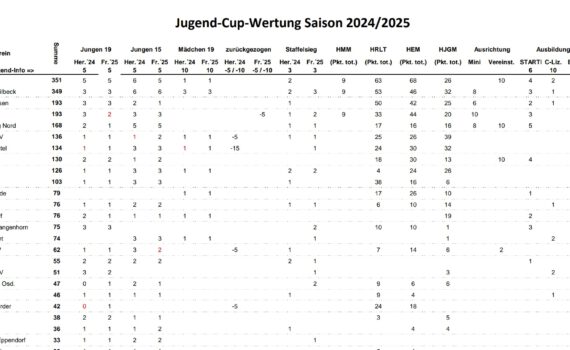 Nachdem unser Verein in der Jugendcupwertung 2023/24 schon einen starken 8. Platz errang, konnte die Platzierung in der Saison 2024/25 noch weiter verbessert werden. Wir haben nun in der abgelaufenen Saison den 6. Platz des Jugendcups erreicht, hinter großen Vereinen wie z.B. TTG Hamburg Nord, Tus Germania Schnelsen oder TTG ...