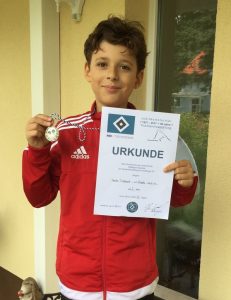 Taako Triebsch holte sich den 2. Platz im B-Schüler Doppel mit seinem Partner Elvedin Lapioz aus Schnelsen.