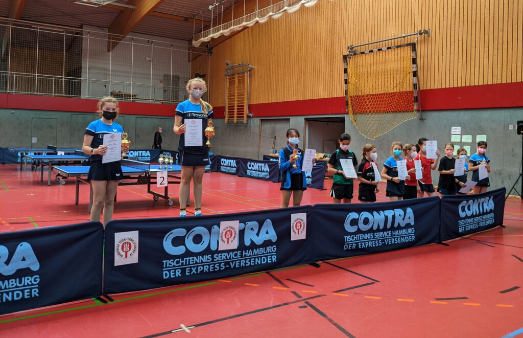 Das 2. Spiel kam gleich im Anschluss, gegen ihre Doppelpartnerin vom TTG Turnier, Lara Kröger vom SC Poppenbüttel. Im Dezember 2019 hatte Mara noch recht klar mit 0:3 bei den Hamburger Meisterschaften verloren, nun kam sie sogar in den 5. Satz, der dann auch nach 4:10 Rückstand tatsächlich gewonnen wurde!