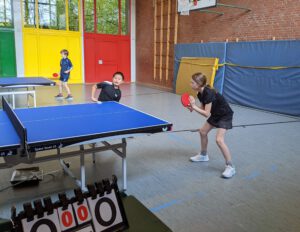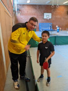 Mara und Avon waren nun besser eingespielt und konnten ihr Doppel knapp im 5. Satz gewinnen. Avon war dann in den Einzeln nicht zu bremsen, er spielte völlig befreit auf und traf fast alles, u.a. gegen einen Spieler, der 5 Jahre älter war. Aber auch Mara konnte nach sehr starkem Auftritt und unheimlich guten Nerven ihr erstes Spiel gegen die Nr. 2 gewinnen und im 2. Spiel sehr gut mithalten. Kiyan konnte dann sein 2. Spiel gewinnen und damit war wieder ein Punkt gegen den Tabellenführer eingefahren.