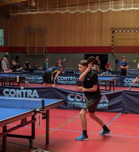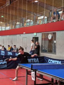In der Gruppe gewann er 4 Spiele ohne Satzverlust, im Viertelfinale wartete sein Freund Harry aus Poppenbüttel, den er in einem sehr hochklassigen Spiel 3:1 besiegen konnte. Im Halbfinale war dann auch Xu aus Sasel an dem Tag nicht für ihn zu schlagen. Herzlichen Glückwunsch zum 3. Platz!