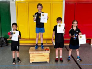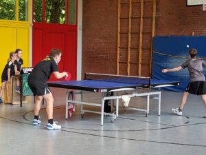 Zuerst wurden die Doppel eingeteilt, der Spieler mit dem höchsten TTR Wert, mit dem Spieler mit dem niedrigsten…und so kam es zu sehr spannenden Kombinationen: Tobias/Willem, Finlay/Lasse, Avon/Kiyan und Karl/Mara.