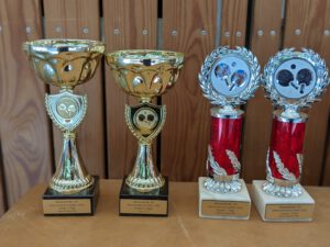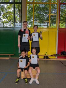 Wir Trainer konnten uns auf keinen Sieger einigen, letztendlich hatte Nathalie richtig getippt: Karl und Mara haben alle Spiele 2:0 gewonnen und wurden damit Doppel-Vereinsmeister!