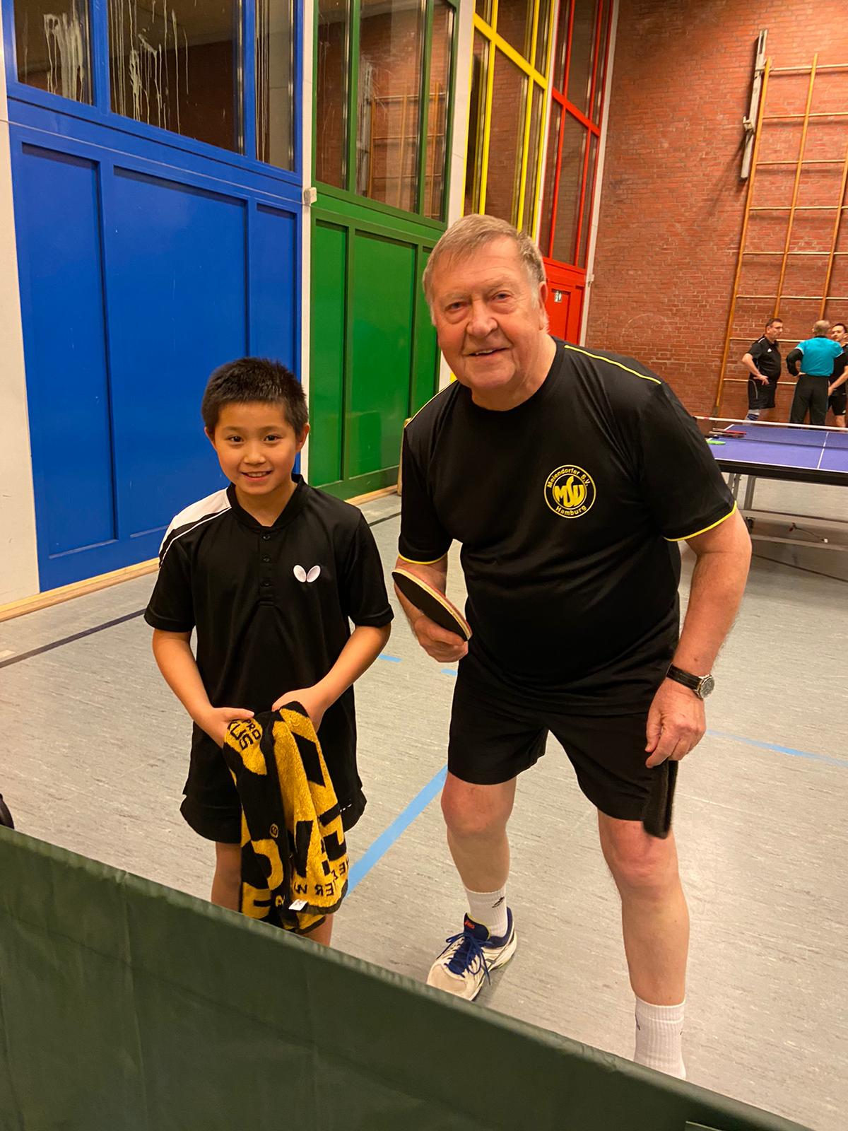 Dann war es soweit, Avons erster Einsatz bei den Meiendorfer Herren! Reinhold und Avon spielten gemeinsam Doppel und machten ihre Sache super und gewannen 3:1!