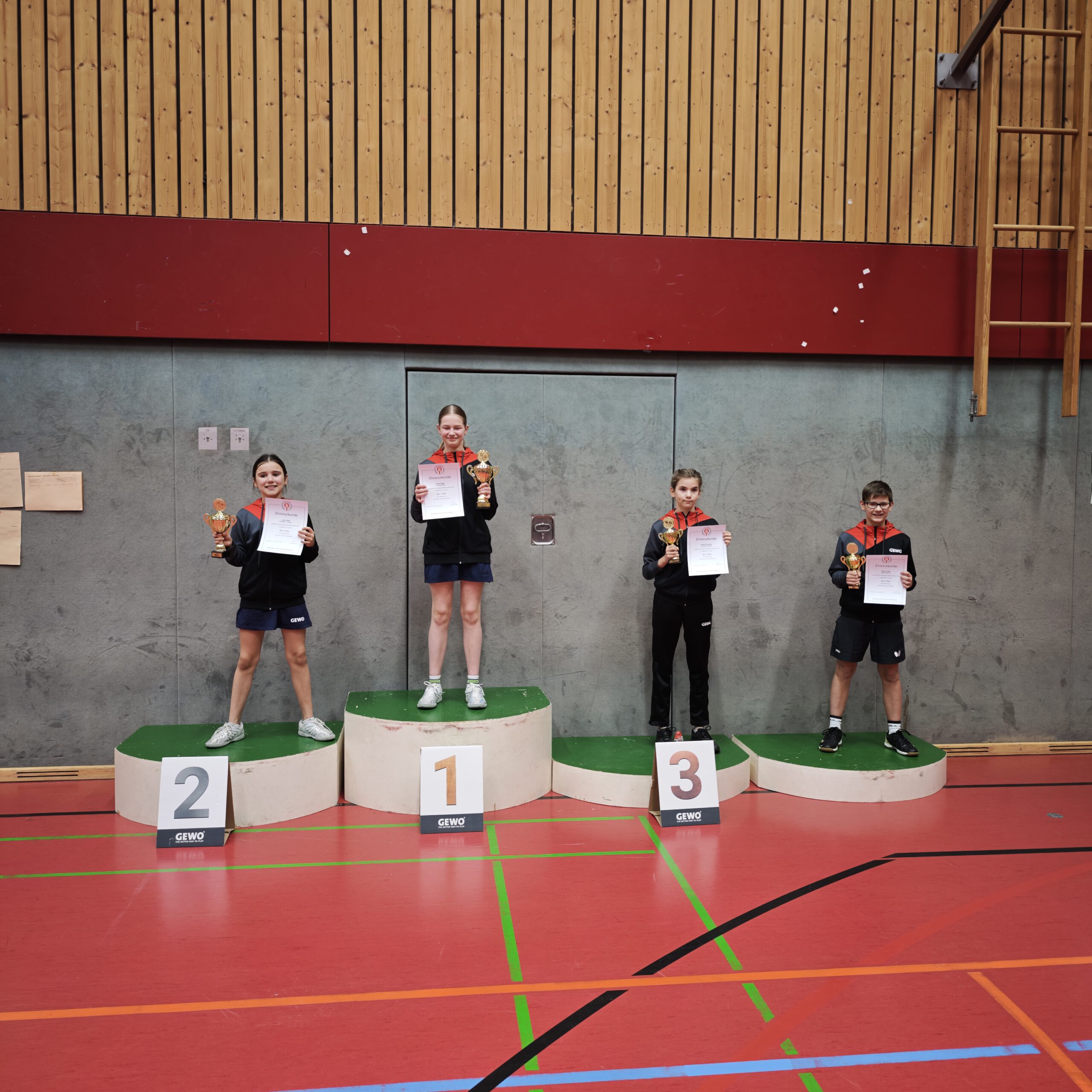 Im Doppel unterlagen Eva und Finja einem starken Doppel der TTG 207. Emily und Nora konnten ihr Viertelfinale souverän gewinnen. Gegen Lucila Reiß und Lea Grzymek war im Halbfinale nichts auszurichten, aber Glückwunsch zu Bronze!
